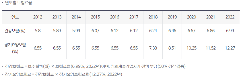 (건강보험료 + 장기요양보험료) * 0.5 = 본인 부담액