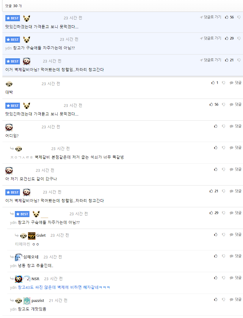 가장 연장자였던 피넛 선수는 맛있게 먹긴 했지만 자기가 혼자 계산하기는 부담되어 쵸비선수와 같이 했다고 하네요
